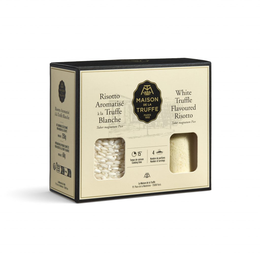 Ce risotto associe le riz italien Carnaroli, surnommé le « roi des riz » pour sa texture crémeuse et sa tenue parfaite à la cuisson, aux arômes envoûtants de truffe blanche.