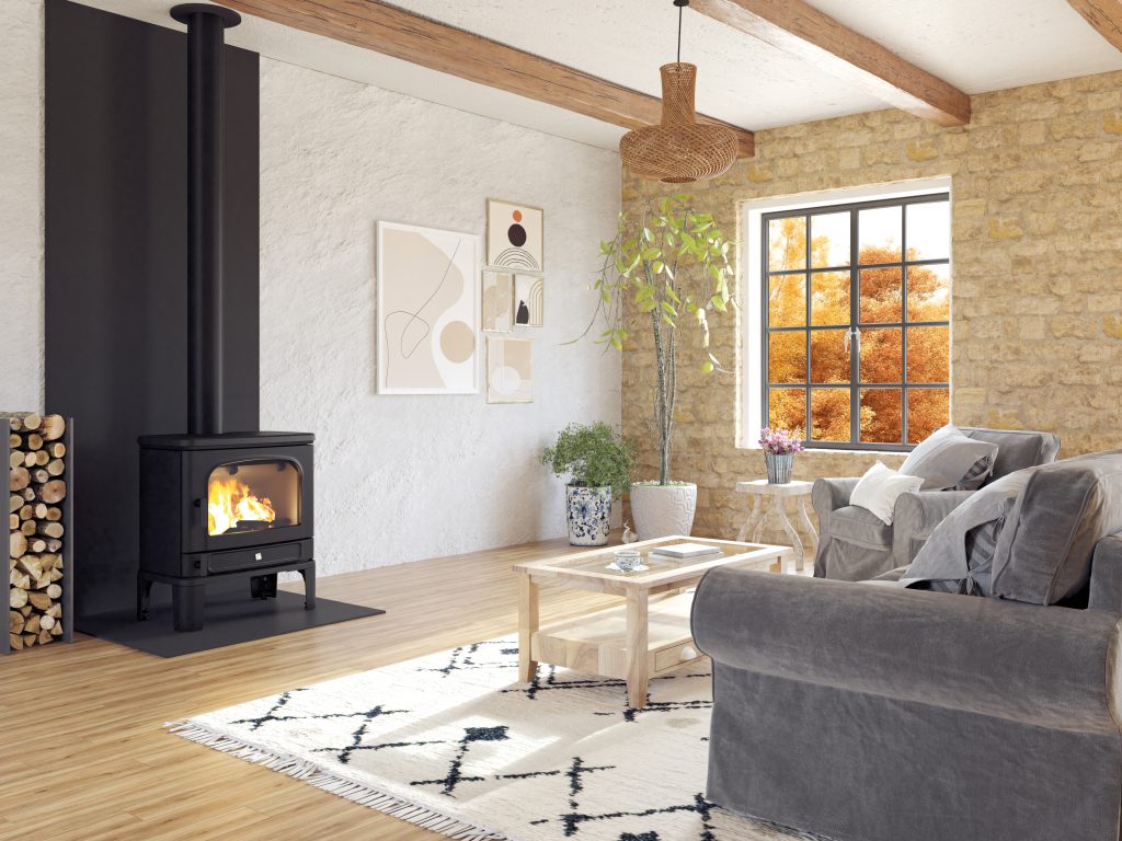 AGATE séduit par ses lignes sobres et son encombrement contenu (83 x 67 x 53 cm pour un poids de 230 kg). Il s’intègre facilement dans les intérieurs où élégance et discrétion sont recherchées. Derrière cette simplicité se cachent des performances certifiées selon la norme EN16510. Grâce à sa façade vitrée claire et son noir satiné, AGATE offre une vision du feu nette et met l’accent sur la sobriété décorative. Il s’adresse aux pièces de vie de taille moyenne, où la recherche d’équilibre entre efficacité énergétique et esthétique est primordiale.
