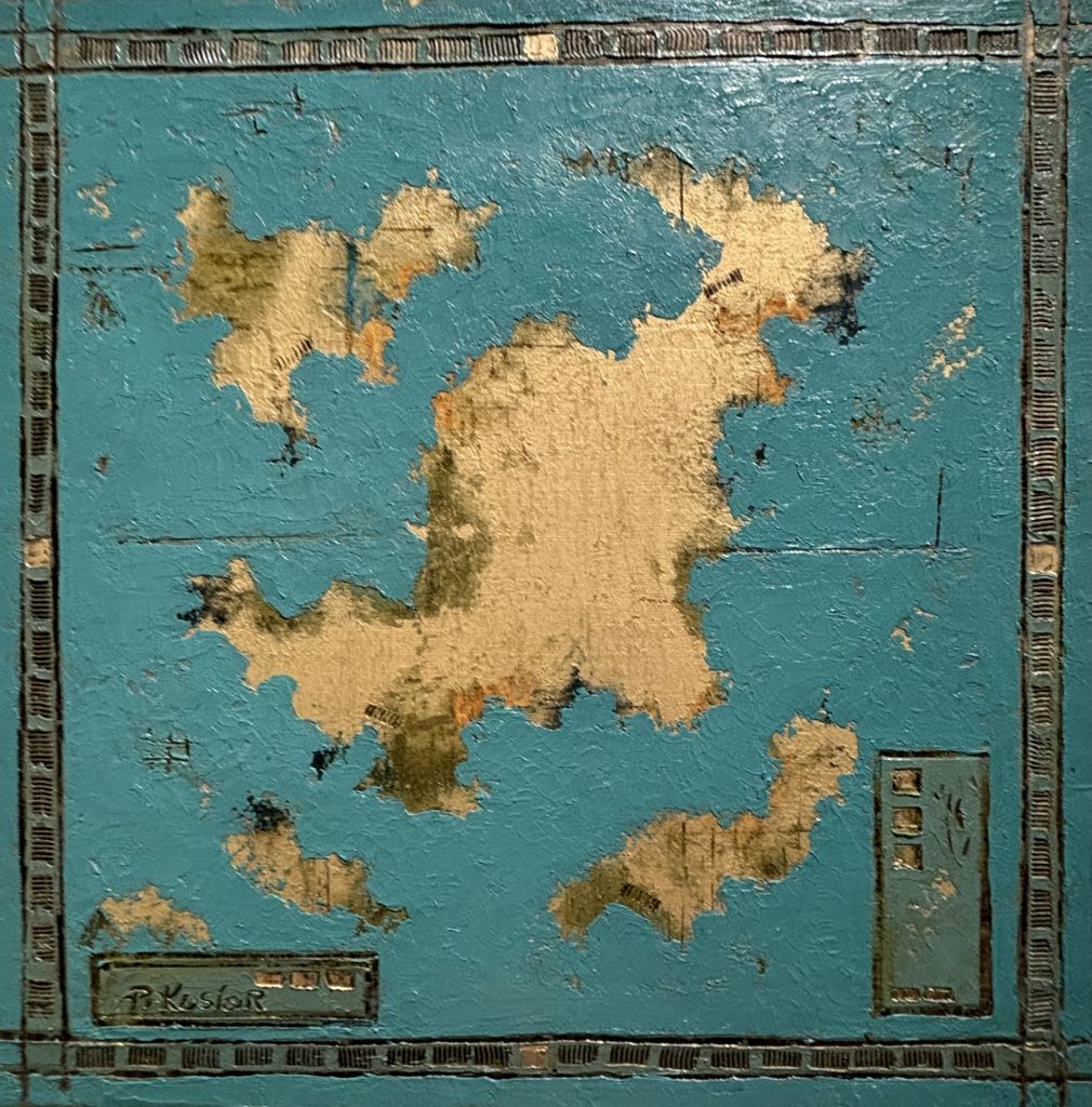 Lien direct entre la sensibilité de l’artiste et celle du spectateur, la couleur reste aussi prédominante dans les « cartes imaginaires » de Pascale Kosior. Cette série emblématique d’œuvres récentes mêle audacieusement poésie et géographie, dans laquelle se dessinent des territoires indéfinis.
